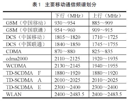 表1 主要移動通信頻譜劃分